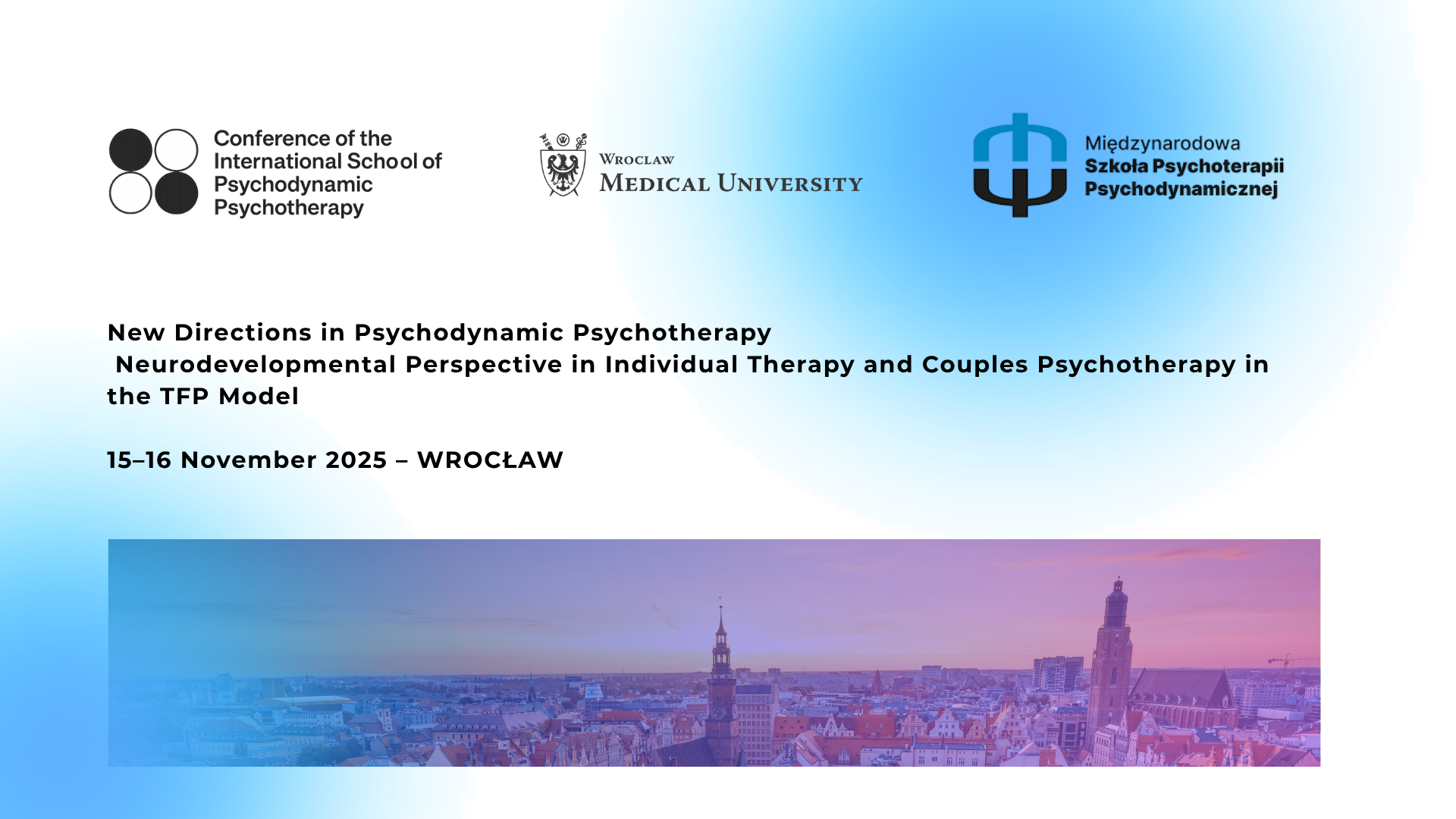 The International School of Psychodynamic Psychotherapy and the Department and Clinic of Psychiatry at Wroclaw Medical University invite you to the conference “New Directions in Psychodynamic Psychotherapy. Neurodevelopmental Perspective in Individual Therapy and Couples Psychotherapy in the TFP Model.”