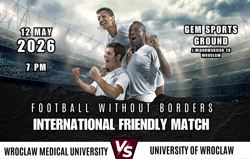 We invite you to a friendly football match between the international teams of the Medical University of Wrocław and the University of Wrocław.