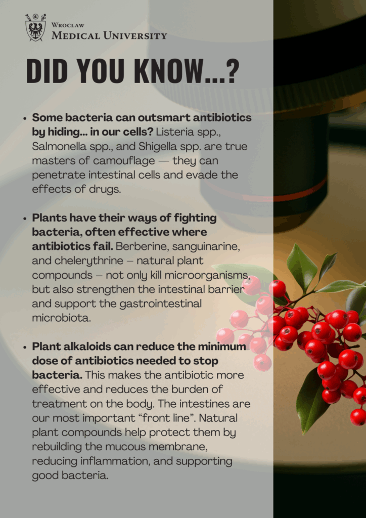 Although plant alkaloids cannot fully replace antibiotics, they can be an essential element in supporting treatment, especially in an era of growing antibiotic resistance. Their advantage is not only their antimicrobial activity, but also their beneficial effect on the microbiota and intestinal barrier integrity, which can reduce recurrent infections and chronic inflammation.