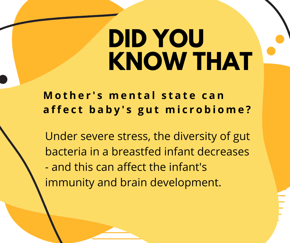 One of the most intriguing findings is the effect of the mother’s mental state on the baby’s gut microbiome. Under chronic stress conditions, a lower diversity of gut bacteria has been observed in breastfed infants – which may translate into their immunity, metabolism, and neurological development. Possible epigenetic changes in the baby’s body caused by microbiota metabolites are also indicated.