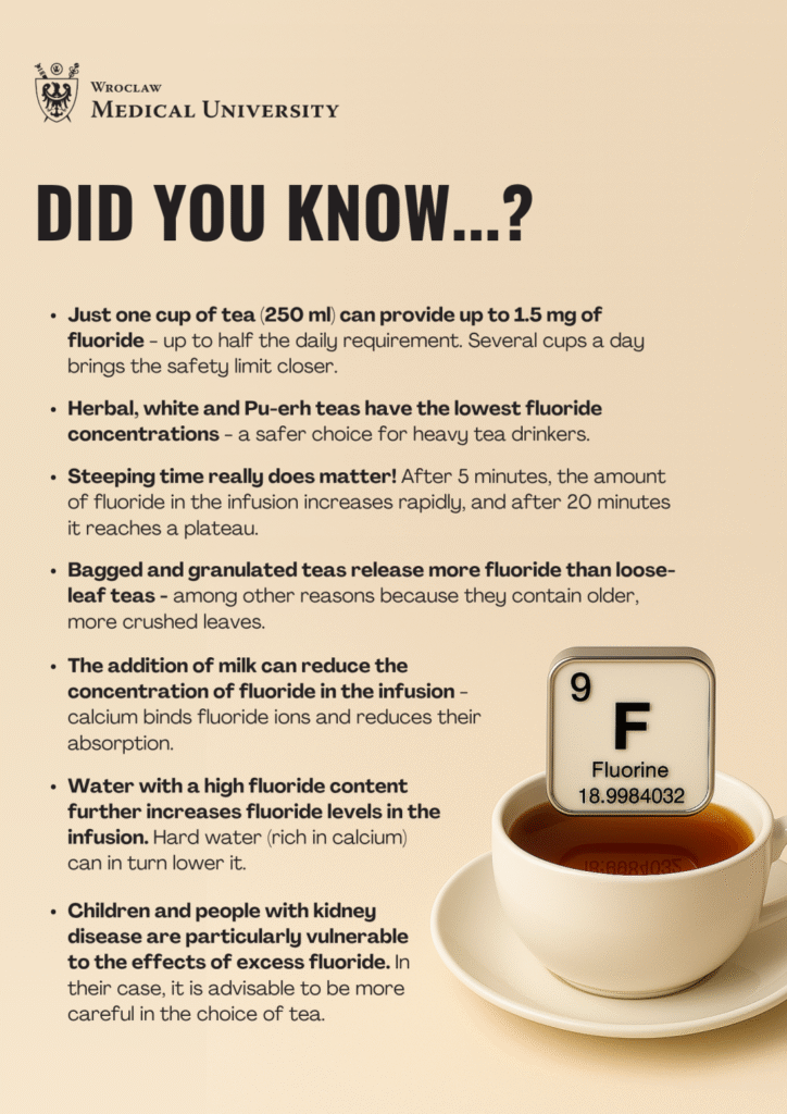 Fluoride is a micronutrient that the body needs, but excess is toxic. In countries where tea drinking is part of everyday culture – such as Tibet – cases of fluorosis of teeth and bones have been reported. That is why the researchers from Wrocław decided to take a closer look at how we brew and drink tea.