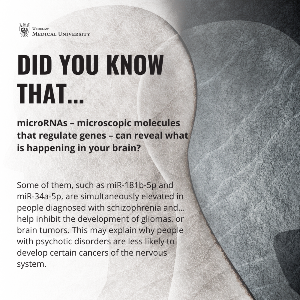 “There are interesting reports of reduced incidence of central nervous system tumors in people with schizophrenia,” says Prof. Błażej Misiak from the Department of Psychiatry at Wroclaw Medical University As he explains, “the expression of miR-181b-5p and miR-34a-5p is reduced in low-grade gliomas, while their overexpression usually has an anticancer effect.”